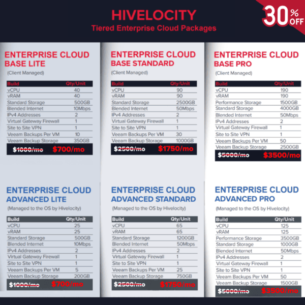 - Enterprise Cloud Plans: Lock in predictable costs and maximize your cloud infrastructure investment with 30% off 12, 24, and 36-month agreements. Schedule a demo today to save.