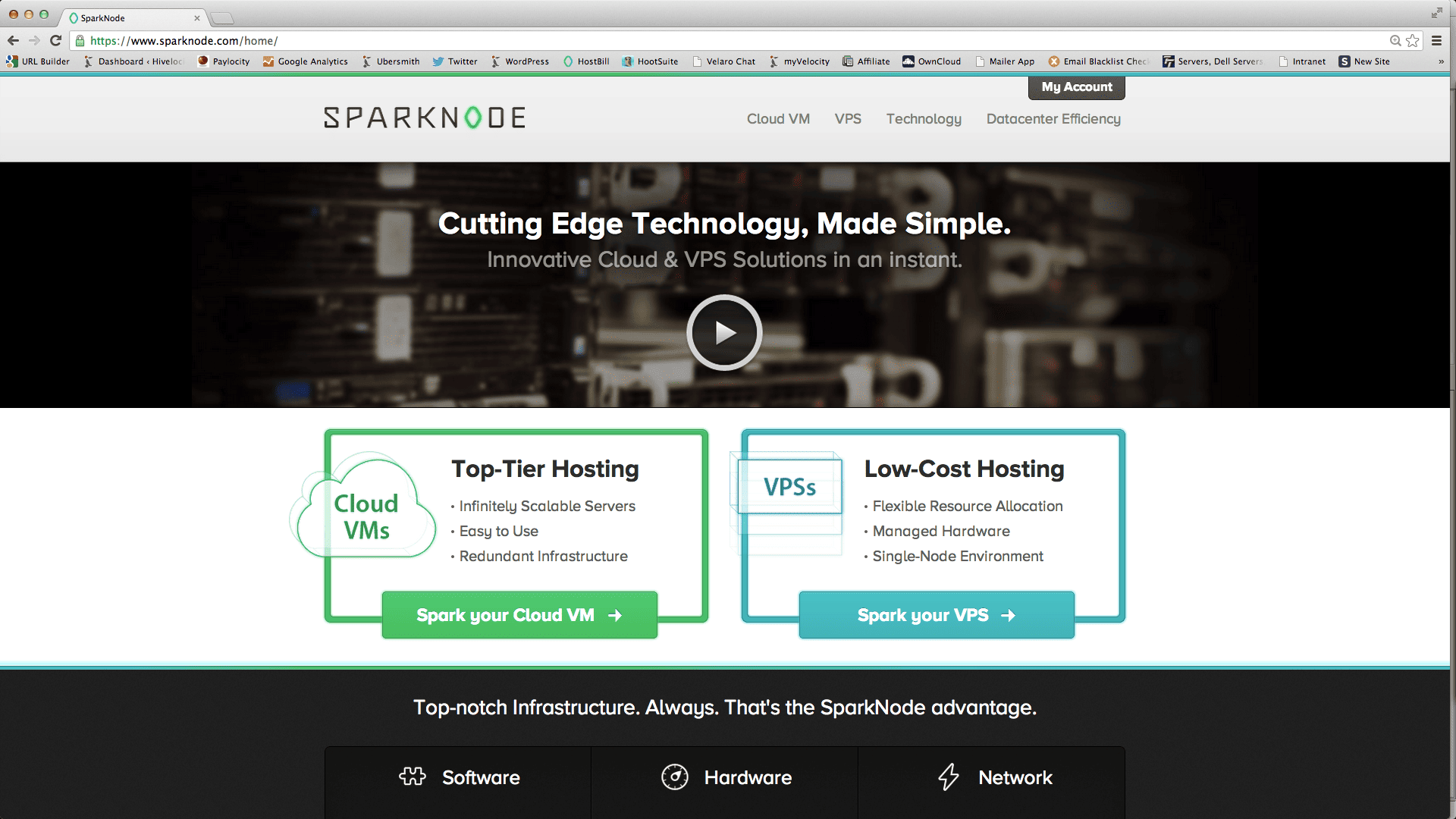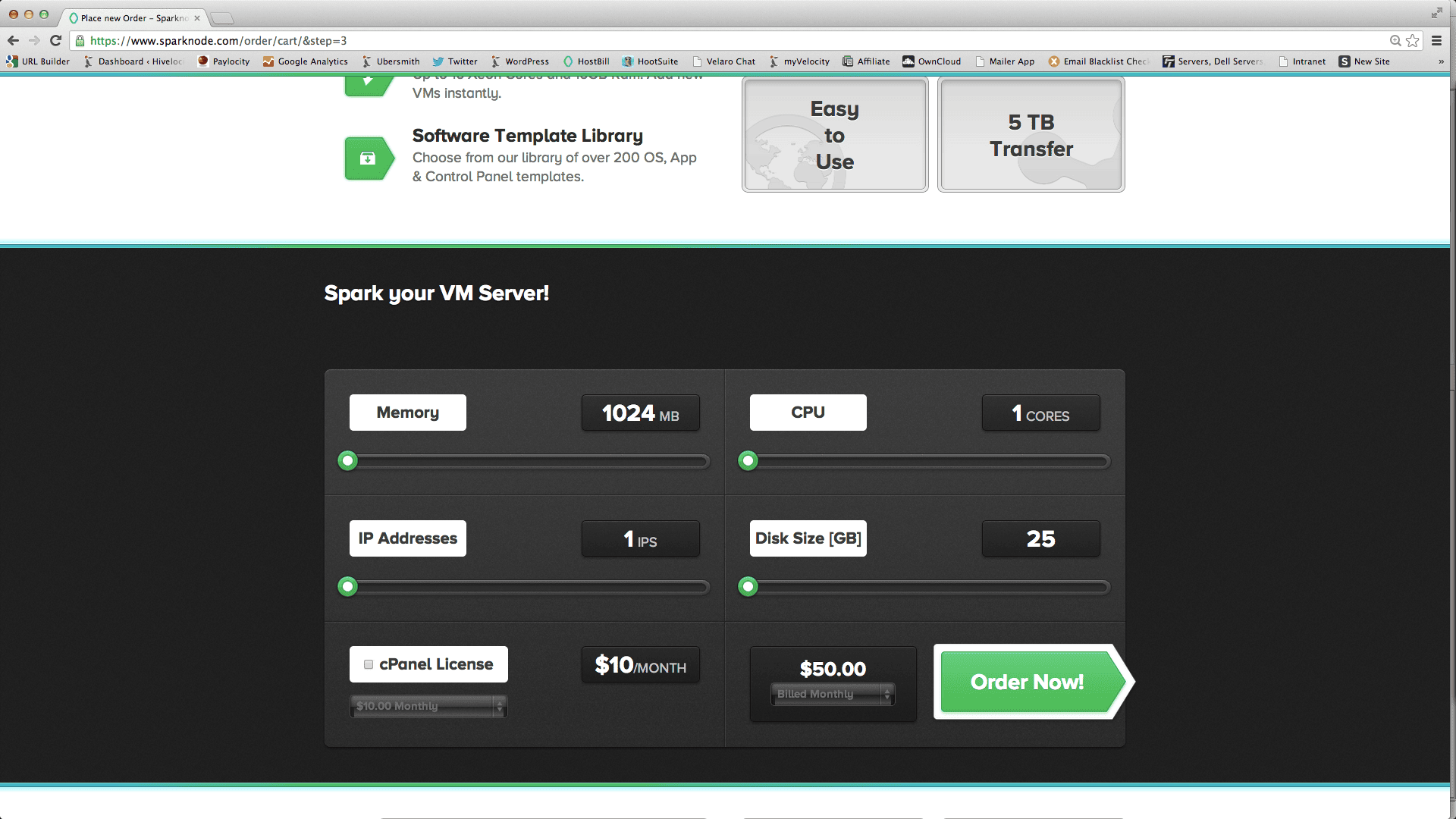 SparkNode emphasizes simplicity and ease of use throughout the entire customer experience. The SparkNode site offers customer’s just 2 paths of products depending on each customer’s needs. For customers looking for an inexpensive virtualized cloud server that can be instantly setup with limited scalability and redundancy there is the VPS option. For customers requiring high availability, fault tolerance, increased scalability and the ability to add or delete new nodes within the customized resource allocation, there is the Cloud VM option. Once a customer has chosen which product is best for them, they simply choose the CPU, RAM and Disk Space they want and they are off and running.